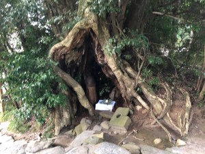Just to the left of the hall for worship was what I’d come to see! An upright manhood is in front of the shrine which itself has a dong underneath it and next to that is a kind of basket containing a few long wooden todgers. This place is actually a sacred power spot dedicated to the gods of marriage which many people, particularly women, visit. It is enshrined with the message saying not to give up.