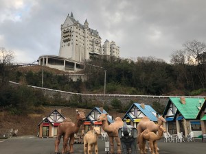 Over on the other side of the theme park was the German village (with camels and an elephant there too!) with the castle atop the hill but this area seemed closed as there was no one in sight and the monorail to the top wasn’t open. The so-called Welcome House building was open though with a restaurant and souvenir shop inside but I didn’t hang about here for far too long as I had a bus to catch to return to Himeji Station.