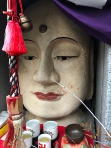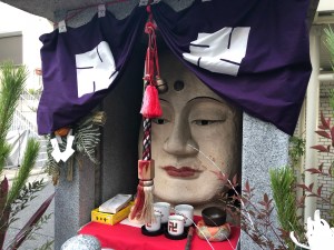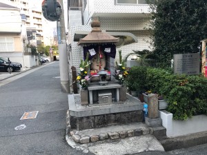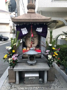 It was yet another early start the following morning as Neil was heading to Okayama whilst I went the short distance west to find this interesting little place (below) that I’d been told about near Sumiyoshi Station. Such places can often be found on streets in Japan but this one is a little bizarre due to the massive head incorporated into the temple which is something of a surprise given that there’s usually just some small ornaments inside.