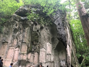 Just beyond the main hall is the place where the ascent technically begins from and a ¥300 entrance fee has to be paid. The hike consists of 1000 steps and takes around half an hour on what is quite a steep mountainside. Along the way there are stone lanterns, little temples and small statues among other things.