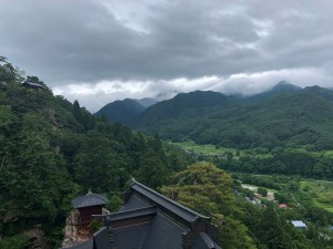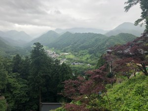 Godaido Hall is just a short distance further up the mountain from that view spot and it has an observation deck extending over the cliff which has some wonderful views looking out over the valley below.