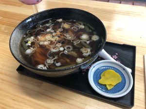 With a lot of time to kill till my next appointment, I took refuge from the rain in a local restaurant and had some hot sansai udon noodles which contained all manner of locally grown vegetables.