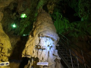 Many of the sculptures have been created by the corrosive effects of the underground water dripping down. Coins presumably interfere with such developments as there was a sign asking people not to throw money in in order to preserve the limestone of the cave which is registered as a natural monument.