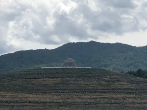 Some of the best views of the buddha are from over near the Moai statues where you can just see the buddha’s head poking out from the hill where the lavender bushes look like the buddha’s head.