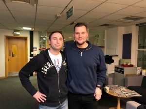 Once the show was off-air we all got to hang out for a bit “backstage” and I was able to get some pictures with the main men. Henry and I were both keen to learn a bit more about how the hugely successful Tom Meighan podcast extra came about.
