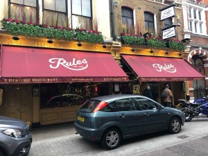 London’s oldest restaurant is the location on 87 minutes for a scene where Moneypenny and Q find M feeling down in the dumps having started to be frozen out from official business. This Edwardian place, specialising in traditional British food, is Rules Restaurant (34-35 Maiden Lane, Covent Garden) which was established in 1798.