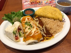 We actually went to this spacious restaurant one lunchtime in the Summer of 2018. At that time I had rarely eaten much Mexican cuisine (I still wouldn’t say I have but I’ve eaten a bit more since then) so just went for the macho combo as, with the biggest price, it seemed to contain the most variety of food items. There was a taco, an enchilada, a burrito and a quesadilla plus soup too. My wife opted for cheese chicken and garlic rice.