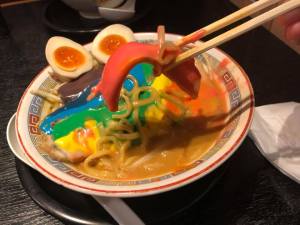 A few days after it’s December 8th release I cycled on down to this restaurant in Otemachi but didn’t realise the rainbow ramen was only available from 2pm. I had arrived at the opening time of 11 am but didn’t want to wait around for three hours so gave up then! Instead I rode home and, as a substitute, made the Sonic the Hedgehog curry which supposedly turns your poo blue!