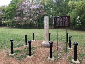 It is a quiet place with some history. Ascend the steps behind the pond and an area with a grassy lawn fringed by trees appears. It is the site of the historical Akatsuka Castle which was originally built in 1456. As you can see below the ruins are pretty non-existent!