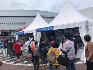 We assumed the fairly long line we saw was to get into the actual velodrome but we should’ve known better as this was the queue for merchandise which the Japanese have a reputation for lapping up.
