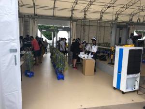 After being handed a free ice-pack we were ushered towards the shuttle bus by the many volunteer officials. It was all very organised as you’d expect in Japan with officials pointing you in the right direction every five metres or so. One of them even said “Welcome to Japan” as if we were tourists having just stepped off the plane!