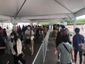 The one and only time I had to show my ticket (printed out on A4 paper) was just after that. The QR code in the top corner was scanned and accepted and that was it. I was finally past all security and Covid protocol checks. I was quite surprised to find out that the Izu Velodrome (1826 Ono, Izu-shi, Shizuoka) only opened a decade ago as I thought it looked a bit older than that!
