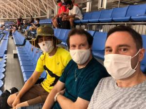 Personally, I think the games should’ve been cancelled but if they were to stubbornly go ahead then I still wanted to experience it in some way as it’s unlikely I’ll ever be able to attend an Olympics again. Track cycling was the one event I really wanted to attend and the day before it began I headed down to Izu to stay at my parents in law’s house before meeting up with Aussie James and his friend Swiss Aurelian outside Ito Station the next day.