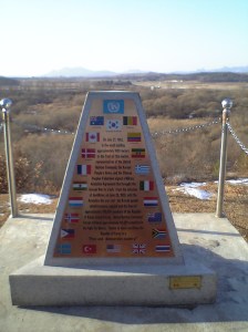 It’s been a long time since we did the Panmunjeom tour and so I can’t remember too much about the likes of Camp Bonifas, Dora Observatory, Dorasan Station, Unification Bridge, some tunnels and so on. I may be wrong but I think that is North Korea in the far distance beyond the observatory below.