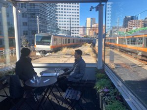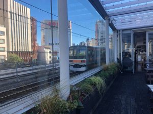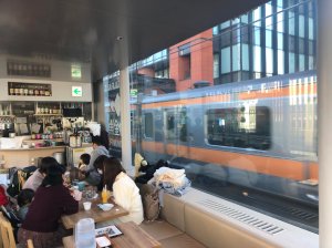 Usually the only way one can watch trains whizz past you whilst eating some food is to just sit on a platform bench eating an onigiri (rice ball) or a sandwich. However, there is a cafe in Tokyo which has taken this simple idea and made it a reality.