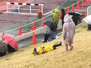 The first half was completely uneventful and I don’t think there was a single shot on target. Rain didn’t dampen the spirts of one boy though who was rolling around on the wet grassy bank without a care in the world!