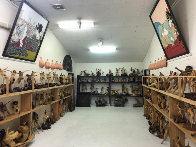 There are over 3,500 exhibits on the premises, beginning with some nude paintings showing semi-clothed couples in sexual positions. There is also a tree that looks like a pair of legs with a removable tallywhacker which the host used to talk about something but I’d switched off by that point!