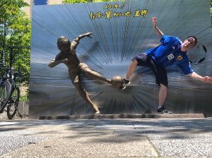 The photo above is a collage of myself in the 2004-06 Japan football shirt at all nine bronze statues but further information on each particular one is as follows…