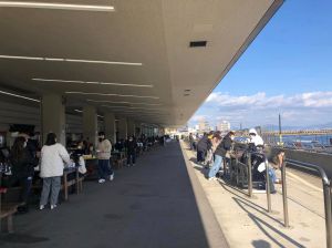 Once I was done with the giant milk carton building and abandoned stations up in Miyoshi I still had a bit of time to myself back in Hiroshima city so I went to Miyajimaguchi station to finally see what boat race was all about. The majority of passengers disembarking were naturally going over to Miyajima by ferry but there was also a healthy number of people heading the short distance to the main Boat Race Miyajima building’s entrance point.