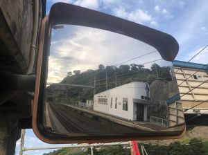 There is only about one train per hour to and from Omigawa but that’s ok as there are some great views with the most popular one being at sunset. There is also a very short walk up the hill behind the station which offers a great view of the station itself in the foreground of the Sea of Japan. The Hokuriku Expressway (Toll Road) looms large via a giant elevated red bridge on that same side. The next post on Tokyo Fox will explore the area around the station a bit more.