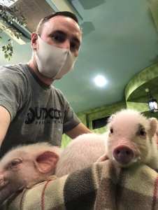 You’re not allowed to pick the pigs up and cuddle them in your arms as such but they will climb all over you. Stroking them is really nice but be warned that their fur is certainly rougher than dog or rabbit hair.