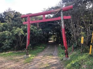 Cape Nagasaki Ichinoshima lighthouse stands tall a short distance south of the hill where the shrine is placed.