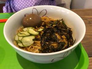My wife had scallion oil with sauce noodles and I had Taiwan salt crispy chicken rice. Both were pretty good but nothing really amazing to set them apart from other dishes of similar note.