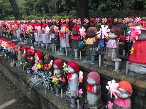 This temple was used as a filming location for a funeral scene in ‘The Wolverine‘ (2013) and before that it featured in the Steven Seagal classic ‘Into The Sun‘ (2005). It is perhaps more famous though for its rows and rows of little statues of jizobosatsu (the protector of the souls of stillborn children) which are decorated with baby clothes, toys and little windmills. Dressed mostly in red baby bonnets, the statues are colourful and sad at the same time.