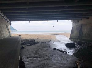 Fringed with lush green mountains on a bright sunny morning certainly made this beach look far more appealing than when I’d seen it before. There are various ways to access the beach but for us (coming from the station) it was done by going under the main road (Route 135) which is always a novel way for getting on to the sand.