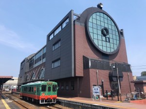 The station that looks like a train is a large 4-storey building and a little overwhelming for such a small city in the heart of a strawberry-producing region. The building includes an observation deck on the fourth floor and a local information centre on the ground floor. Preserved locomotives are exhibited both inside and outside the station, and on weekends the line operates a service for tourists using C11 and C12 class steam locomotives. More details here
