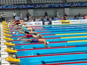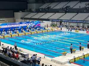 The 65th Japan Championships 25m swimming competition included a multitude of races covering all styles; freestyle, front crawl, backstroke, breaststroke, butterfly and medley. The races at the start of the session saw the competitors announced rapidly with very little time to know who anyone was taking part. Not that I would have known anyone anyway!