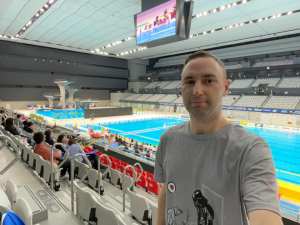 Having pretty much only ever watched swimming on TV during the Olympics it was interesting to see how it was all presented in terms of the swimmer introductions (which did happen for all the finals) as they came out from behind the screen before bowing and waving to the camera operator stood in front of them. My vantage point also allowed me to take a peak behind the curtain and see what was happening before the intros as someone with a clipboard or tablet tried to organise them into the right order for entering the fray.