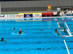 This was the 99th Japan Championship Water Polo Competition but little did I know that all the teams were university ones. Female ones too (the male competition was in the afternoon) so I don’t know what the other spectators must have thought when they saw a foreign man of my age watching alone, and through binoculars at times too!!
