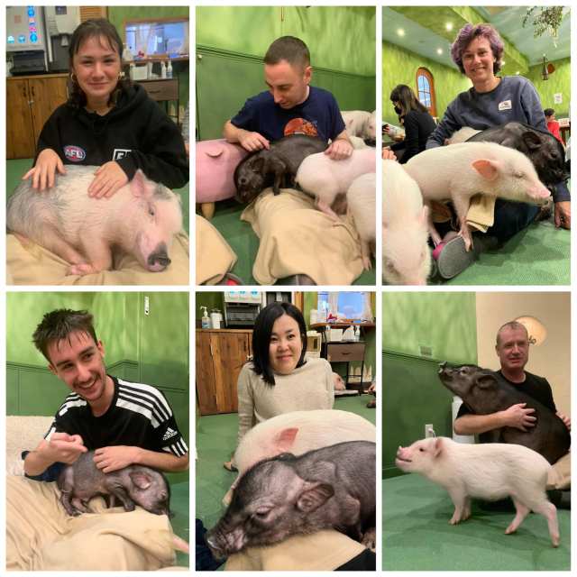 However, a few weeks before their arrival from Australia my eldest sister said the one thing that they all wanted to do was visit the piglet cafe in Harajuku. This place is extremely busy and popular so the only time slots available were in the evening on the 24th or 25th December. As a result I booked it for Christmas Day in order to give us a unique memory of the big day itself.