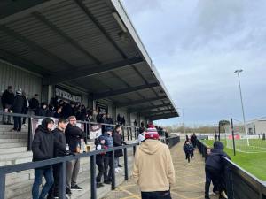 The original 1:00 pm kick off was actually delayed by ten minutes allowing more people to get into the ground for this Northants derby. The attendance announced towards the end of the match was 867 which is around double the usual amount. Not bad for this level of football.