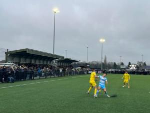 Beforehand I really didn’t know what to expect and even thought The Beehive might just be a field with a small stand somewhere! It was certainly more impressive than we both expected and we even had to queue up to get in through the turnstile such was the fan demand to see this local derby.