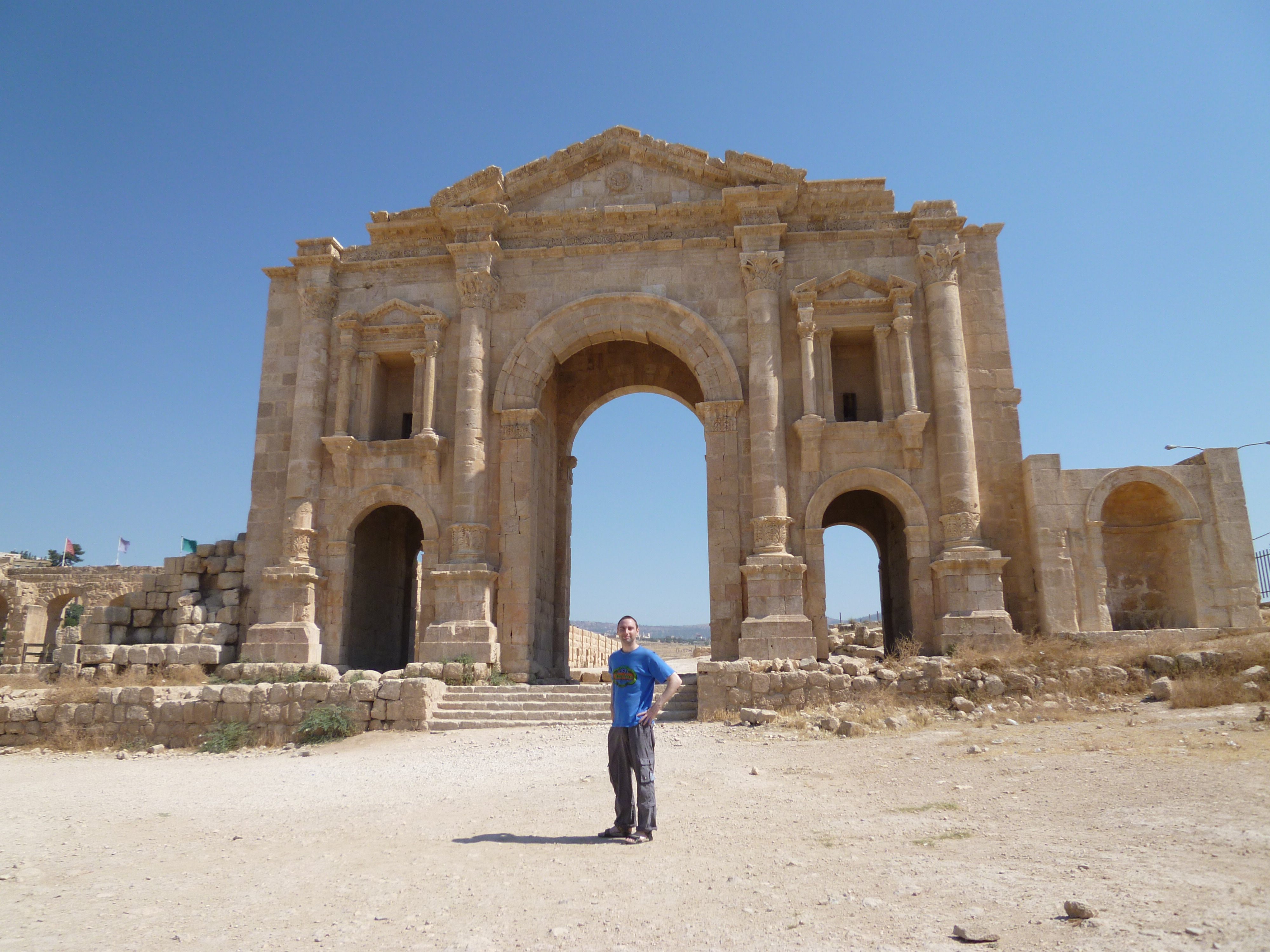 Hadrian’s Arch (below) was visible in the distance just up the road but there wasn’t really anyone around other than the construction workers in a country which is almost like a big building site. Jordan will look even better when its finished!!